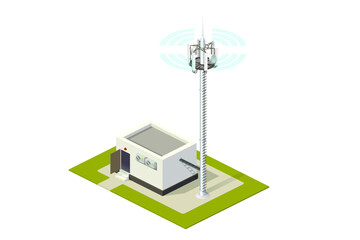 Cell base station with tower and antennas isometric illustration