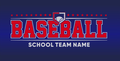 Baseball team design isolated on dark blue black background. School spirit shirts sport fan emblem. For print or cut (Cricut, Silhouette).