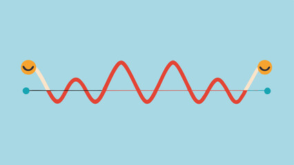 Waveform A waveform graphic that shows peaks and troughs representing happiness during life events e.g. weddings failures but the baseline flat line shows where happiness returns.