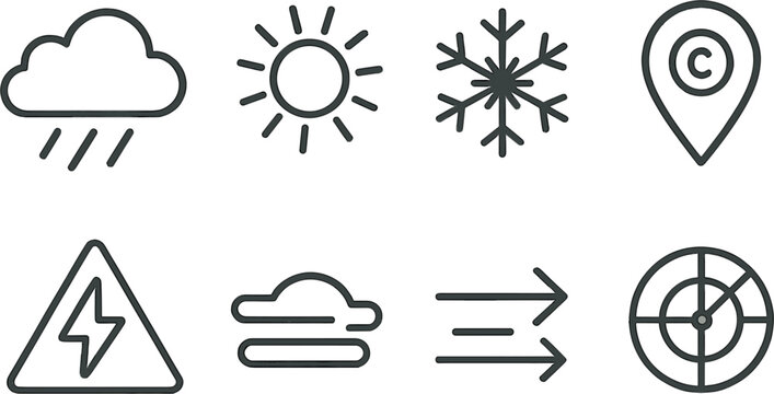 Weather and climate silhouette icons set – forecast, symbols for meteorology and environment