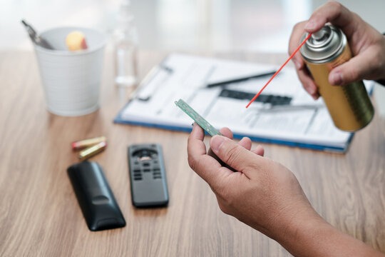 Cleaning service advertisement with gloved hand scrubbing countertop