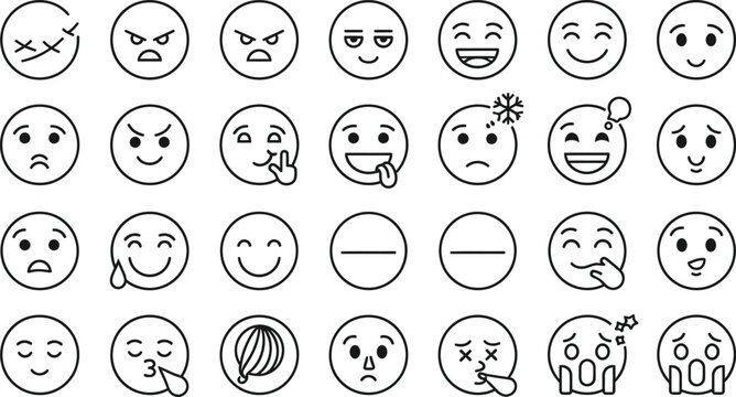 Set of Basic Emoji Line Icons Depicting Different Facial Expressions