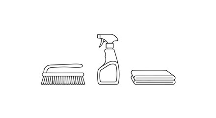 Pixel art cleaning tools set: mop, plunger, bucket, spray bottle, sponges