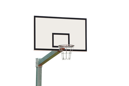 Outdoors mini football and basketball court with ball gate and basket surrounded with high protective fence.
