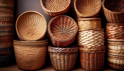 Close up of intricately woven bamboo texture, showcasing interlocking strips and handcrafted basketry design