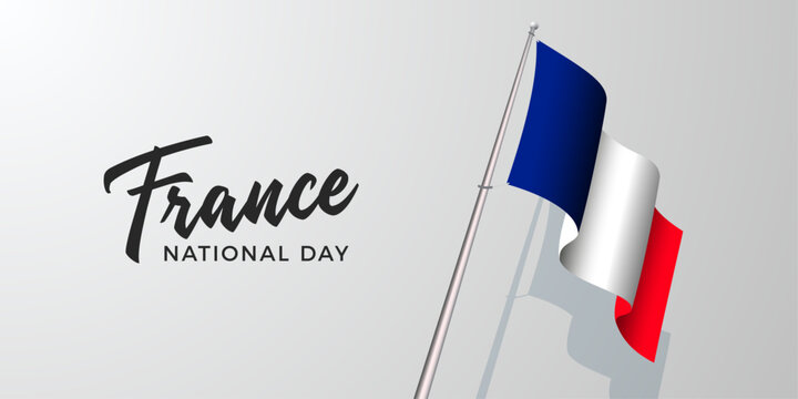 France national day banner design. French flag background. Red and blue. France independence and freedom. Patriotic elements. Festive and parade design. Minimal Travel Vector poster illustration.