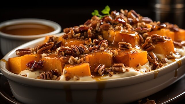 baked sweet potato with yogurt sause Top view. Copy space image. Place for adding text or design