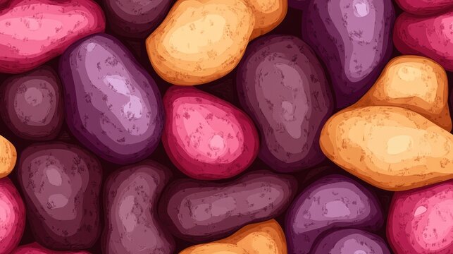 Illustration depicting a vibrant pattern of brown potatoes and batat featuring an array of attractive vegetables Colorful and simple design showcasing dark potatoes and batat