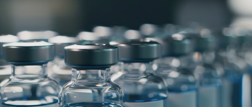 Close-up view of medicine vials, arranged neatly and ready for use, representing healthcare and medical advancement.