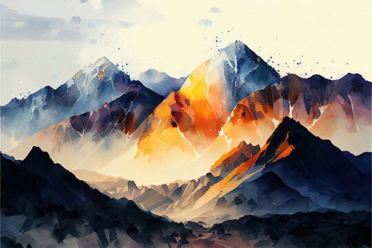 abstract mountain ranges in morning, a mountain range with snow, illustration with mountain sky