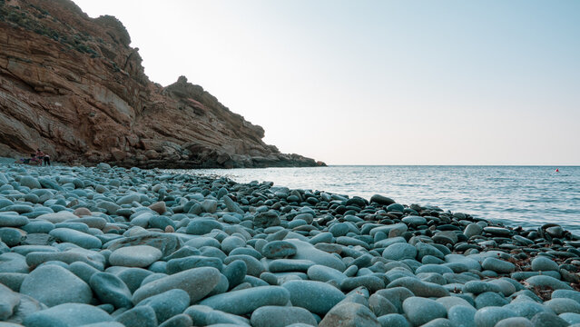 view of the Blue Bay (Mavi Koy) located between the mountains in the Yıldızkoy region of Gokceada, Canakkale. Imbros island.Turkey