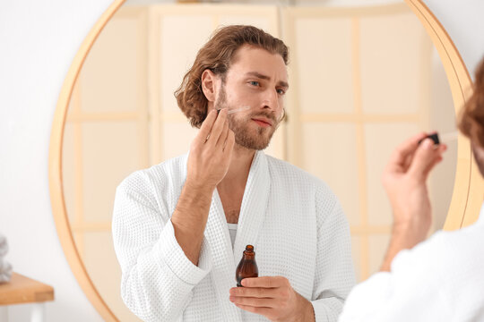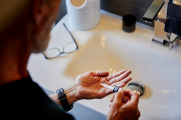 Senior man applying essential oil on his hand