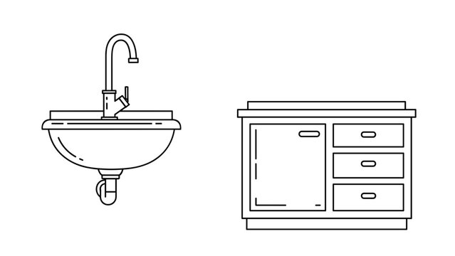 A functional bathroom setup features a stylish wall-mounted basin with a modern faucet, paired with a practical vanity cabinet containing a cupboard and multiple drawers for essential storage.