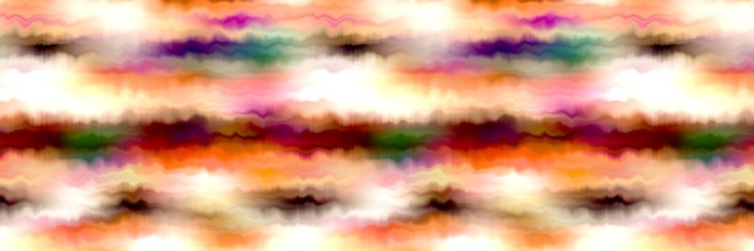 Funky summer ombre tie dye batik stripe border pattern. Seamless stain space dyed striped effect fashion trim edging. Washed out boho beach wear ribbon endless tape.