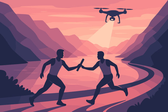 Relay race. Concept of teamwork. working together of business. Vector illustration