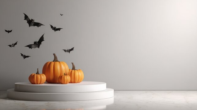 Halloween night frame background with decorated pumkins light garlands and bats for spooky haunted mysterious atmosphere