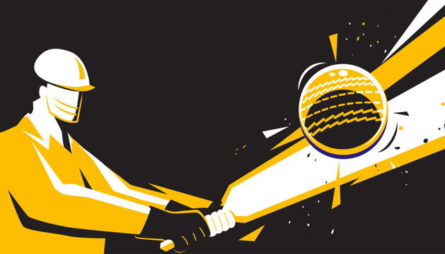 illustration of batsman playing cricket. Batsman In Playing Action On Abstract vector illustration