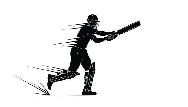 Silhouette of cricket batsman hitting ball on field, professional sports action, competitive match energy, athletic player movement, outdoor game performance, dynamic swing