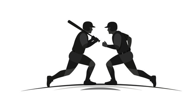 Silhouettes of male baseball players in various action poses, including pitching, catching, batting, and sliding, showcasing dynamic movement and athleticism.