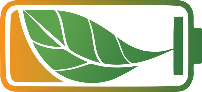Green leaf inside orange and green battery symbol vector template energy