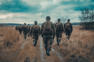 Soldiers walking on a battle field