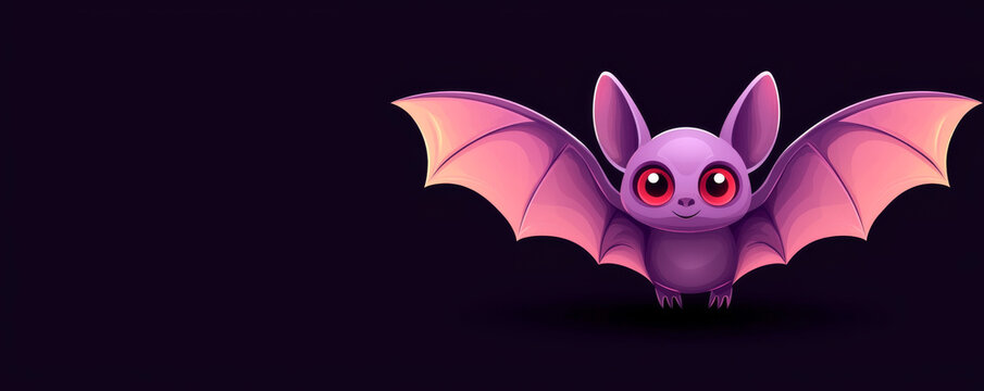 A cute cartoon bat with oversized wings and bright red eyes, set against a dark background, perfect for Halloween themes.