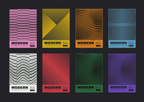 Abstract geometric pattern background, vector Bauhaus circle, triangle and square lines art design. Black and white Bauhaus pattern background, posters set