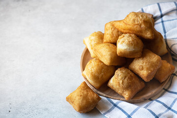 Kazakh national baking - Baursak. Traditional baking, deep fried pieces of yeasty dough.