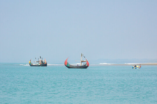 Cox's Bazar Sea Beach, Chittagong, Bangladesh, Traditional Wooden Fishermen's fishing boat, Worlds longest natural sea beach, Bay of Bengal