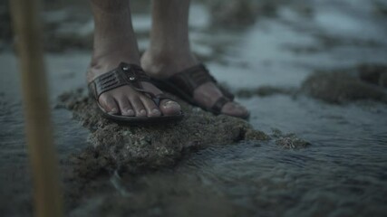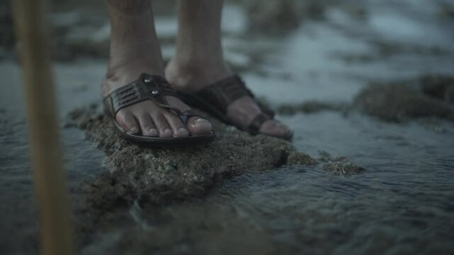 An Indian man stands on the ocean coral