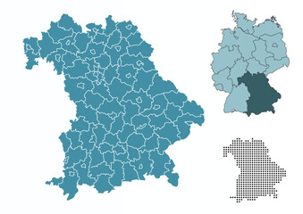 Bayern state blank outline map set