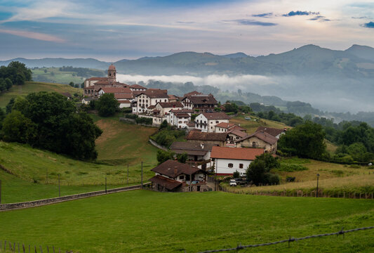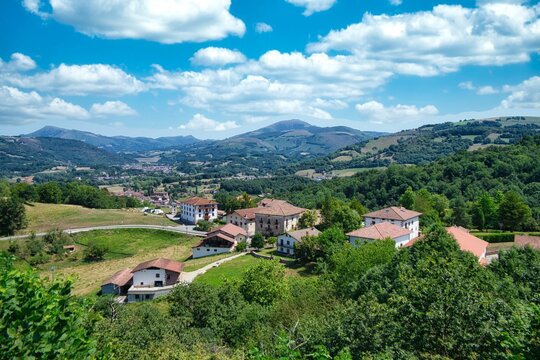 Aerial shot of the cozy town of Amaiur-Maya, municipality of Valle de Baztan, Navarra, Spain.