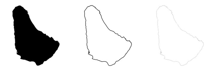 Barbados country silhouette. Set of 3 high detailed maps. Solid black silhouette, thick black outline and thin black outline. Vector illustration isolated on white background.