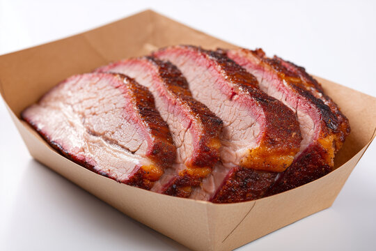 Delicious, tender smoked brisket with a rich glaze, ideal for barbecue enthusiasts and food photography.