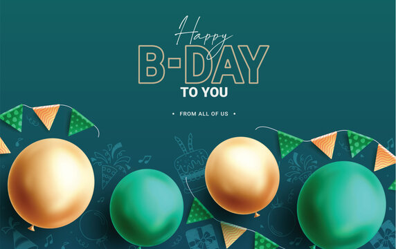 Birthday vector background design. Happy bday greeting card with yellow and green balloons party elements in elegant simple background. Vector illustration birthday greeting template.