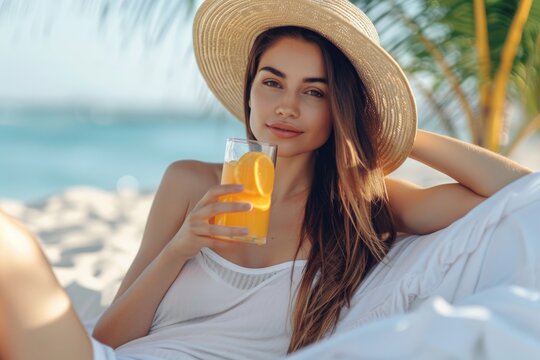 Surfer girl promoting summer adventure and beach lifestyle