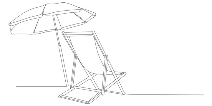 Minimalist Beach Deck Chair with Umbrella – Continuous Line Vector Illustration