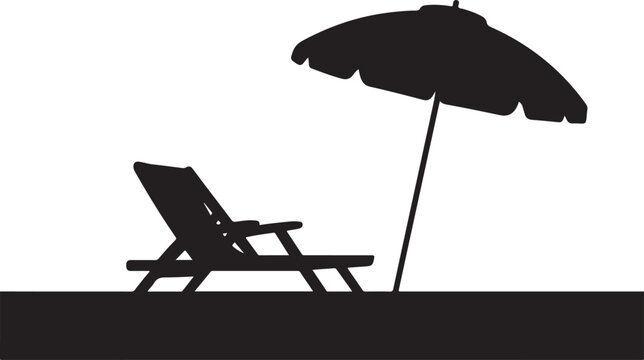 Beach chair and umbrella black silhouette vector illustration summertime relaxation holiday vacation seashore seaside concept background