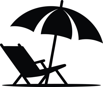 Logo templates with beach umbrella and sun bathing lounge chairs, vector illustration isolated on white background. Black and white graphic logotypes, logo templates with sunshade umbrellas