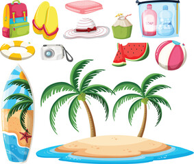 Set of beach objects