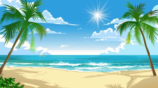 Tropical summer clipart with sun, ocean, and palm trees for creative projects and designs