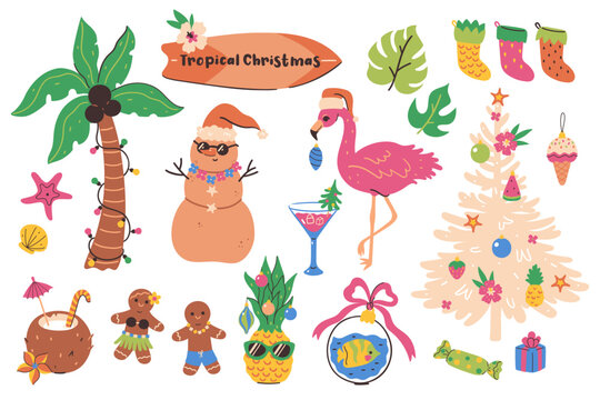 A Big vector summer set. Accessories for beach holidays by the sea. Flat design Illustration for ads, web, flyers, and banners. Set of cartoon icons. Summer fruits, food, transport and clother.