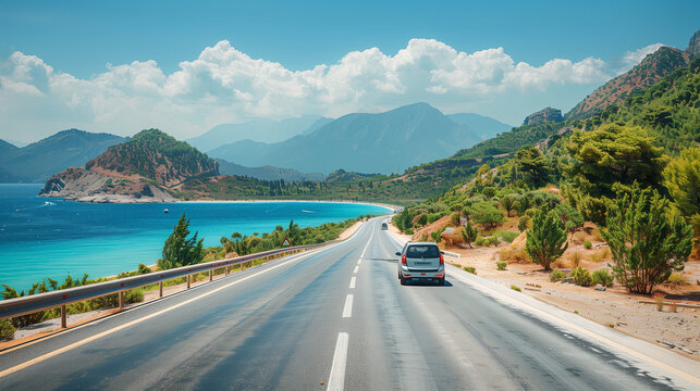 car driving on the road of Europe. road landscape in summer. it's nice to drive on the beachside highway. in Europe, summer road trip