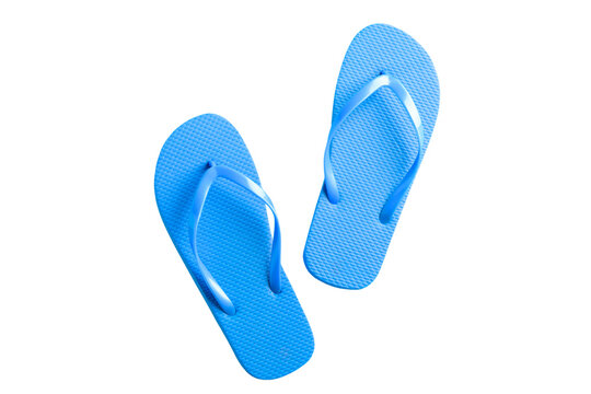 Blue flip flops ideal for beach trips and summer outings, isolated on white, PNG