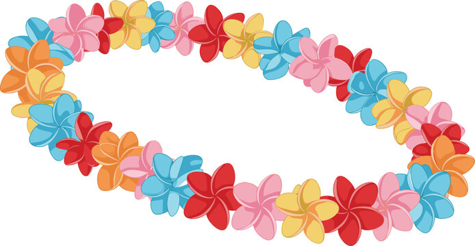 Bright colorful flower lei, tropical Hawaiian garland, summer plumeria wreath, festive island decoration, exotic floral necklace, vector design, celebration theme
