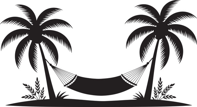 Palm tree hammock icon for tropical vacation, beach relaxation, summer getaway, and leisure design