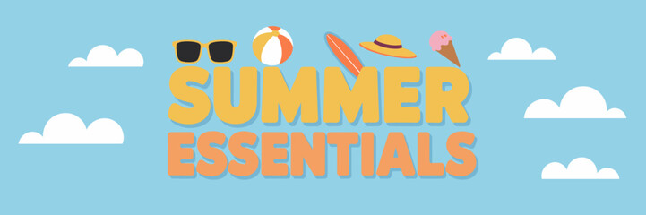 Summer essentials icon collection with sunglasses, towel, and beach ball – Great for editorial use, travel content, or warm-weather promotions.
