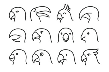 Expressive Bird Beaks. Line style icons of expressive beaks only: parrot beak closed, toucan beak half-open, cockatoo beak with