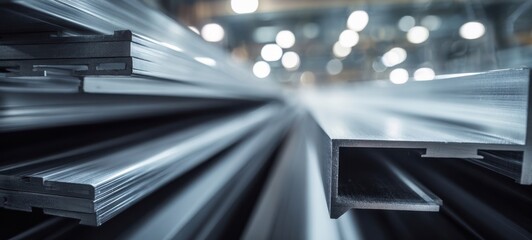 The Steel Beams Lined Up in a Modern Industrial Warehouse with Motion Blur