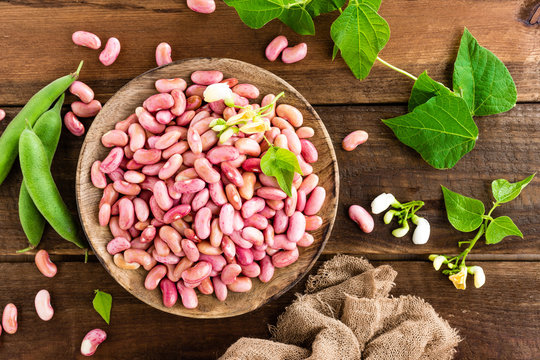 Dry beans with pods isolated on white background. Harvesting vegetable beans in autumn.